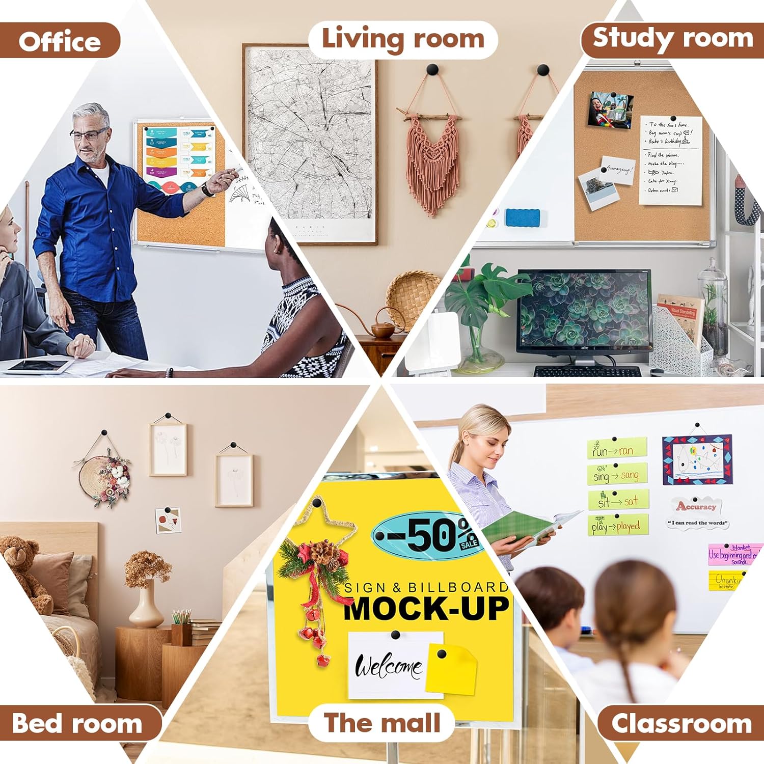 - 【Diverse Occasions Applicable】These poster tacks are suitable for you to use on the wall in different places, such as your living room, bedroom, study room, office, classroom, or the mall, also ideal for a cork board, cubicle, bulletin board, jewelry display board, bringing people a nice visual enjoyment. Before purchasing, please consider the hardness of your walls, our decorative thumbtacks are good for wooden walls, plaster walls, drywall, concrete walls, and ceramic walls.