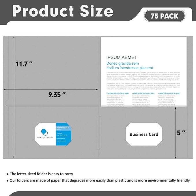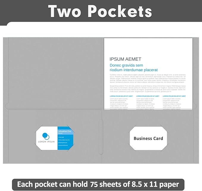 - Seventy-five Pack Two Pocket Folder: This Color File Folder features two pockets, providing ample storage space for your documents, papers, and other important materials. Keep everything organized and easily accessible
