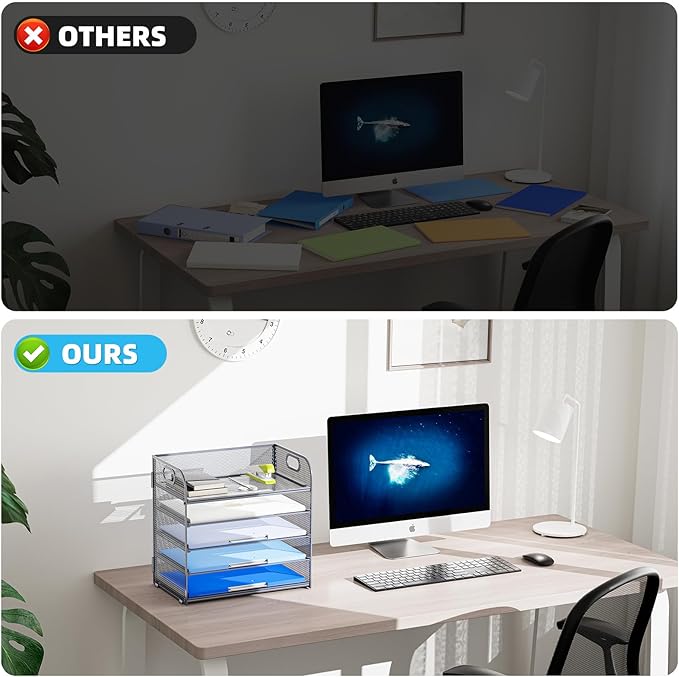 - 【PREMIUM QUALITY】The mesh desktop file organizer is made of lightweight durable metal mesh and reinforced with a solid steel frame that makes it have long-lasting strength and reliable performance.
