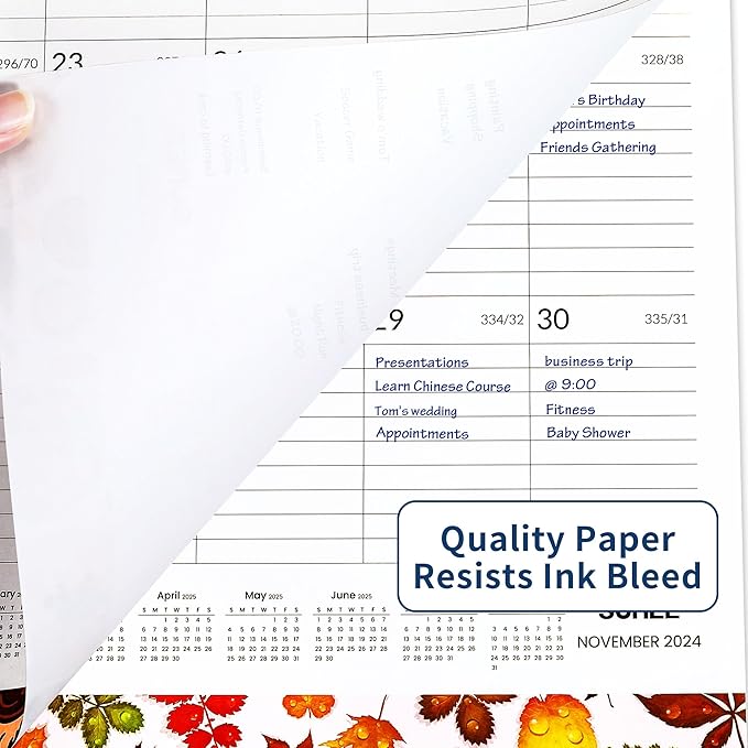 - Non-bleeding Paper: The paper of desktop calendar 2025 has a unique design and looks motivated. Writing with a pen on the paper is smooth without ink jamming or bleeding through. When the month has been recorded the pages can be turned along the white wire without tearing them out