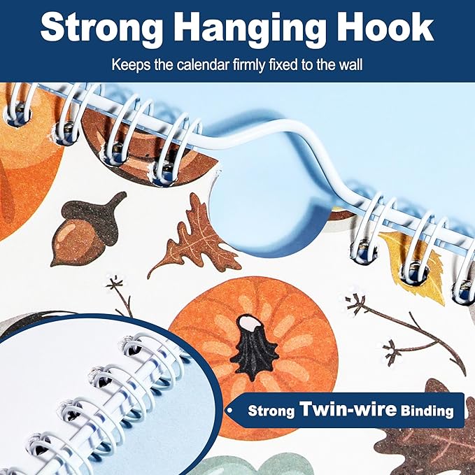 - Spiral Wall Calendar: The twin-wire binding design of this desk calendar 2025 allows the large size to be hung securely on the wall, making it easy to view and record important events. It can also be hung on the wall as a wall decoration to add to the family atmosphere. Cute and functional