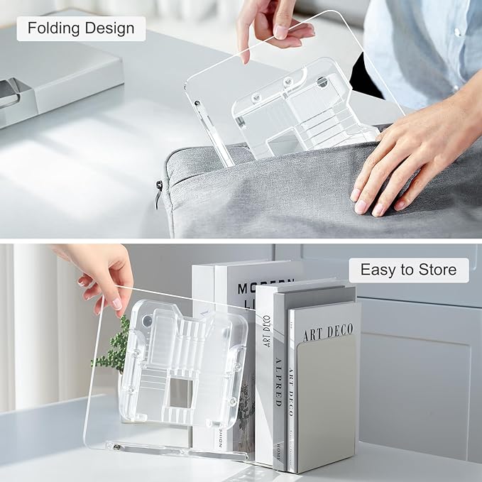 - Versatile and Convenient: This acrylic book stand offers 13 adjustable angles to accommodate various needs, making it suitable for iPads, books, smartphones, and more. It frees up your hands, making it ideal for students for reading, writing.