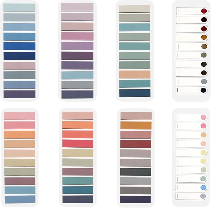 - - Package includes: 8 sets of 1600 pcs Morandi-colored sticky tabs, 1.73 x 0.43 inch X 8sets. Simple to mark and highlight important information.