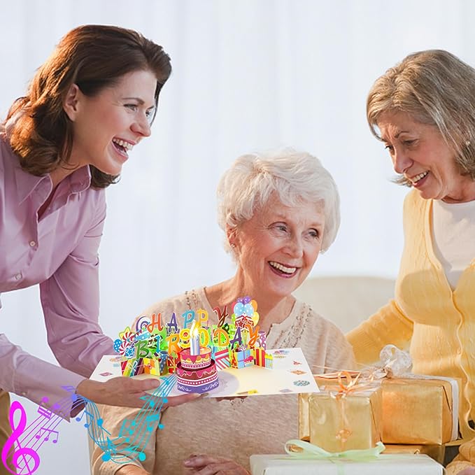 - Blow This LED Candle Like A Real One: Instead of those boring cards that do nothing or play no music, this lovely 3D musical birthday card features a pop up effect while playing a happy bday song with colorful lights flashing at once the 90 birthday person opens it. Their jaws will drop! Thanks to a fun LED candle, they can blow this candle like on a normal cake, then it will plays an audience cheers. Our unique greeting card is sure to make that special birthday person feel cherished and loved