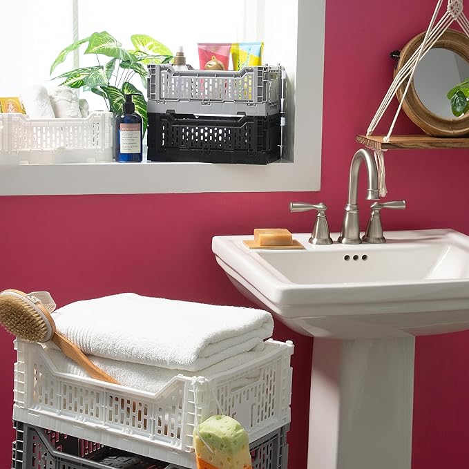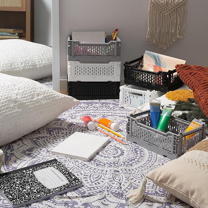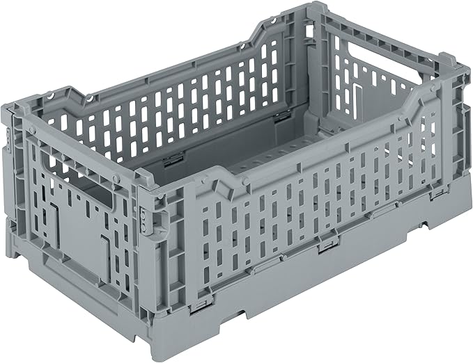 Simplify 4LT Collapsible Storage Crate | Small | Foldable | Stackable | Plastic Bin | Home Organization | Dorm | Office | Crafts | Shelf | Grey
