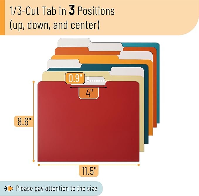 - Keep organized and effortlessly identify your documents with a 1/3-cut tab system in three distinct positions. Simply add custom labels to locate anything you need quickly!