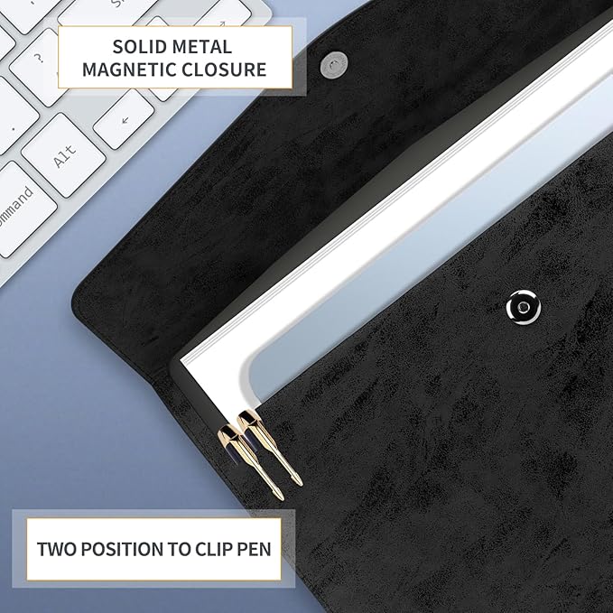 Toplive Document File Folder, Waterproof Thin PU Leather A4 Envelope Folder File Document Organizer Storage Case, Filing Envelope Folder with Magnetic Closure, Ash Black