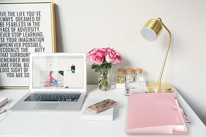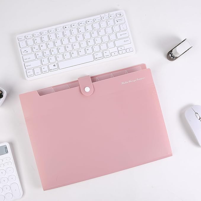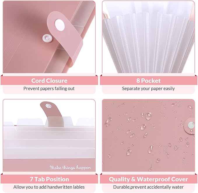 SKYDUE 8 Pockets Expanding File Folders, Accordion Folders, Portable Paper Bill Receipt Organizer, Letter Size, Home College School Office Supplies, Pink