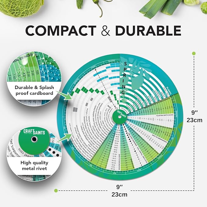 - 12.24 UPDATED PRODUCT DESIGN THAT IS NOW EASIER TO USE AND UNDERSTAND - Simplify your garden with our easy-to-use wheel-based vegetable garden planner! Determine seeds needed, planting depth, optimal spacing, and much more for 21 popular vegetables. The garden planner works in all regions of the USA and Canada. Simply adjust the frost line with the frost dates of your area to get started.