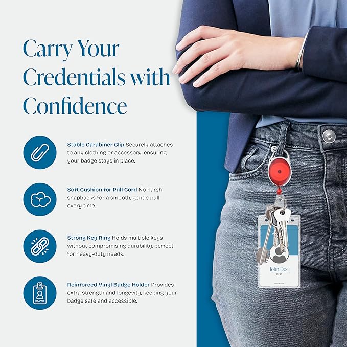 - 【Top Quality】Upgraded and reinforced construction makes the most solid and durable retractable badge holder of this kind on the market. we're different in all of these products that look the same!
