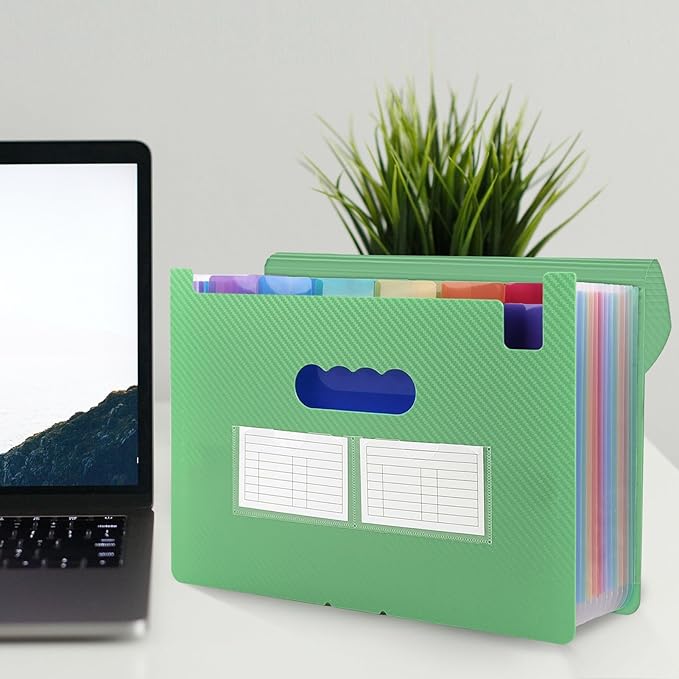 SKYDUE File Organizer, 12 Pockets Accordian File Organizer, Letter Size Expanding File Folder with Colored Tabs and Expandable Cover Portable Bill Receipt Organizer Green