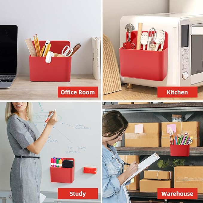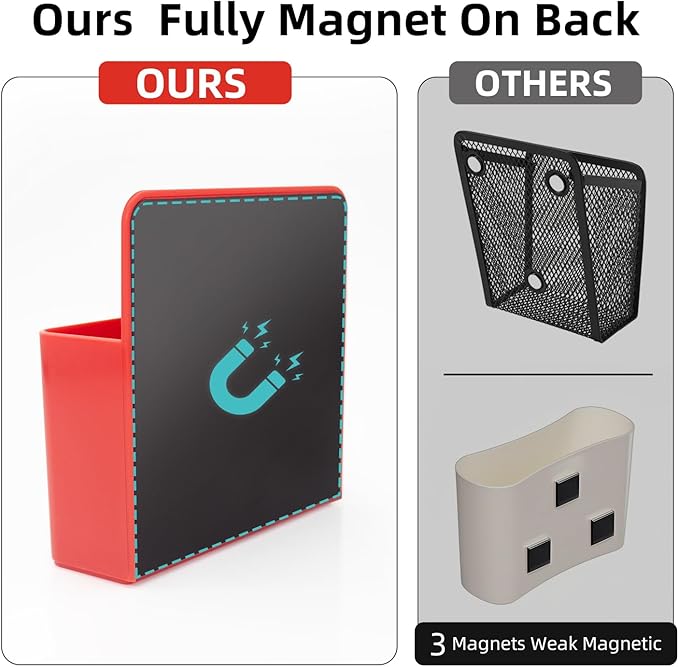 - Simple and Practical:Our magnetic pen holders are suitable for holding pens, pencils, dry erase markers, erasers, rulers, children's scissors and other office, home or school supplies. Also can be served for refrigerator, whiteboard, locker or other metal surfaces.Keep your stuff always organized!