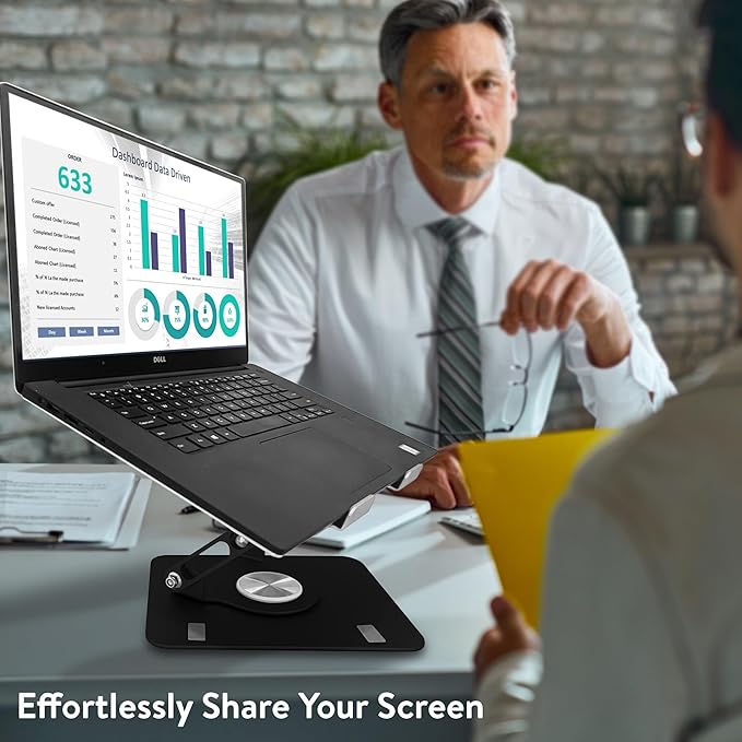 - ROTATE: Enhance collaboration and flexibility with a computer laptop stand with 360° rotation, perfect for designers, presenters, and remote workers sharing screens effortlessly.