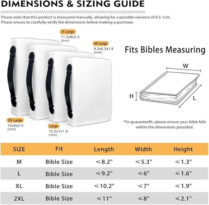 - 【Material】 The bible cover is made of high quality PU leather and metal zipper, which is waterproof, lightweight, anti-dirty and sturdy. It can protect your bible or book from scuffing and falling.