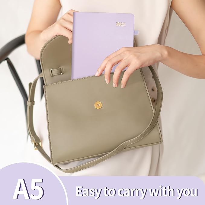 SUNEE 2025 Weekly & Monthly Hardcover Planner 5.5" x 8.3" - 12 Month (January 2025 - December 2025), Small Hardcover Planner, Pocket, Notes, 100 GSM Paper, Purple