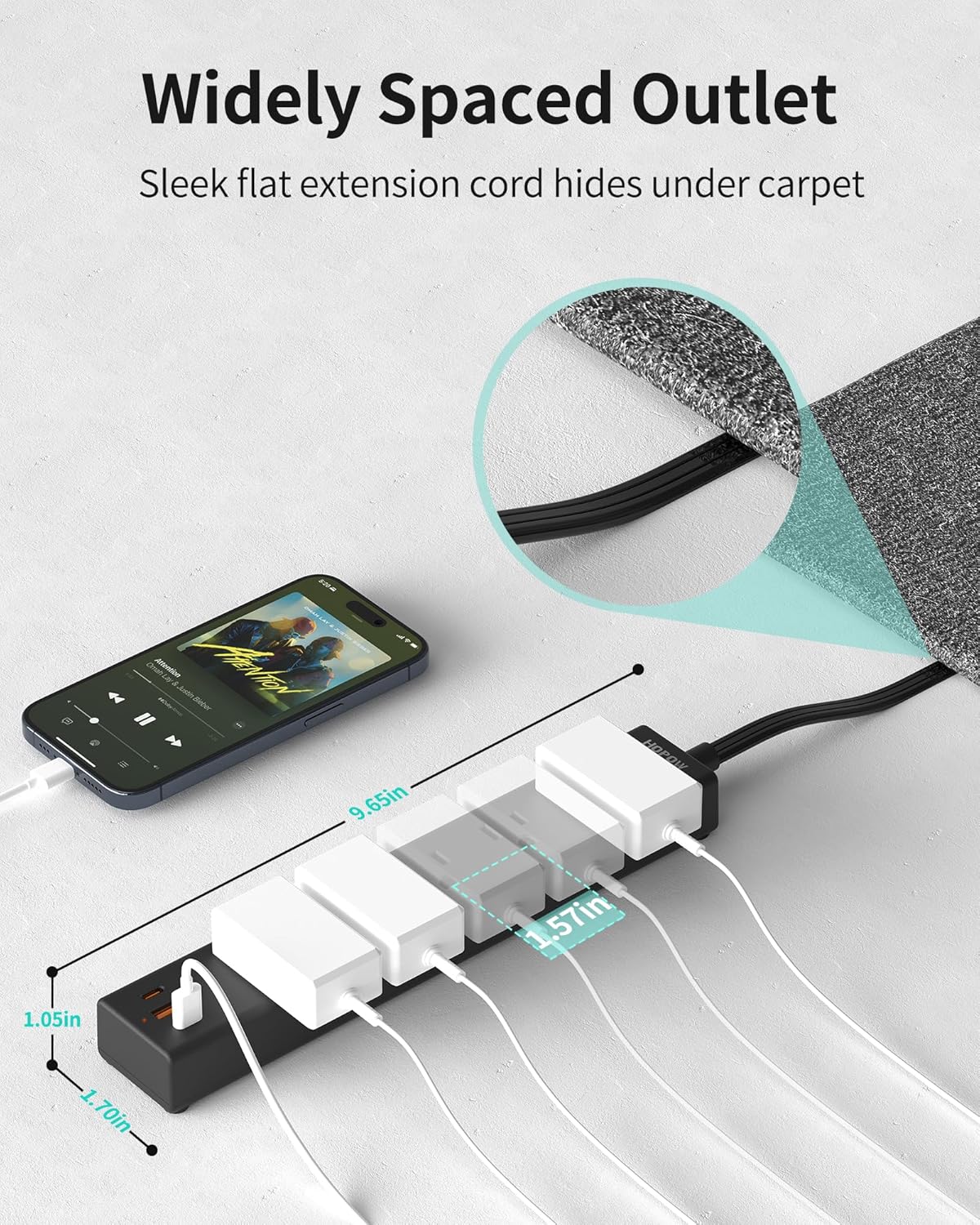 - 【Widely Spaced Outlets】Equipped with an 15-foot extension cord, this charging station offers flexibility and reach to power your devices wherever they may be. The wide spacing between surge protector, measuring 1.57 inches, accommodates larger power adapters without blocking adjacent outlets.