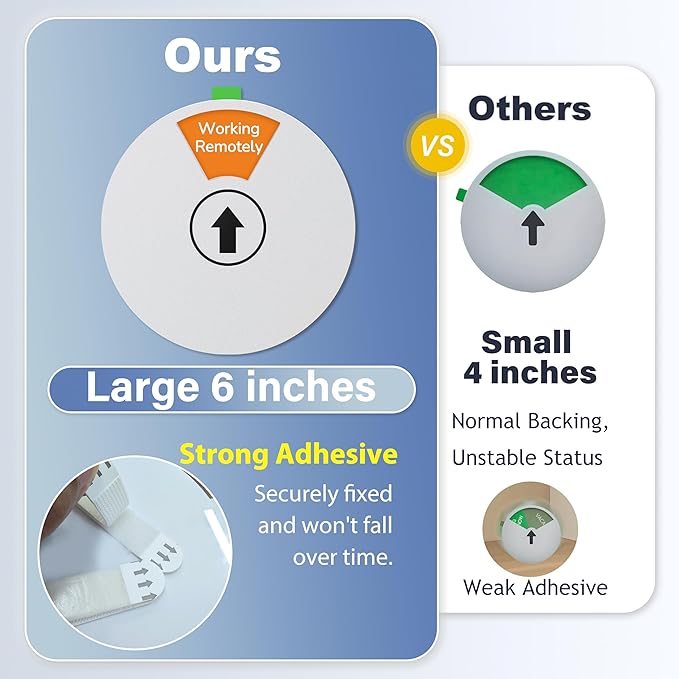 - 【EASY TO ROTATE】 - Simply spin the knob to rotate between status. Each status has a small magnet to helps securing the status in place. (NOTE: The sign’s magnet is intended for stabilizing the status only, and cannot stick directly to metal)