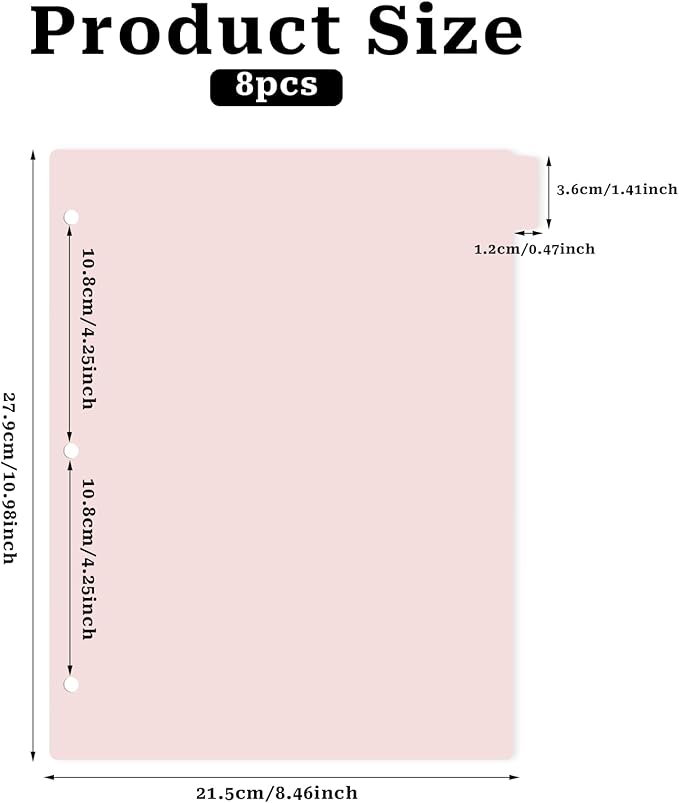 - 【Packing List】 The package contains 8 pieces of A4-sized three-hole notebook split pages in light pink color. The color is fresh and can be used in various occasions.