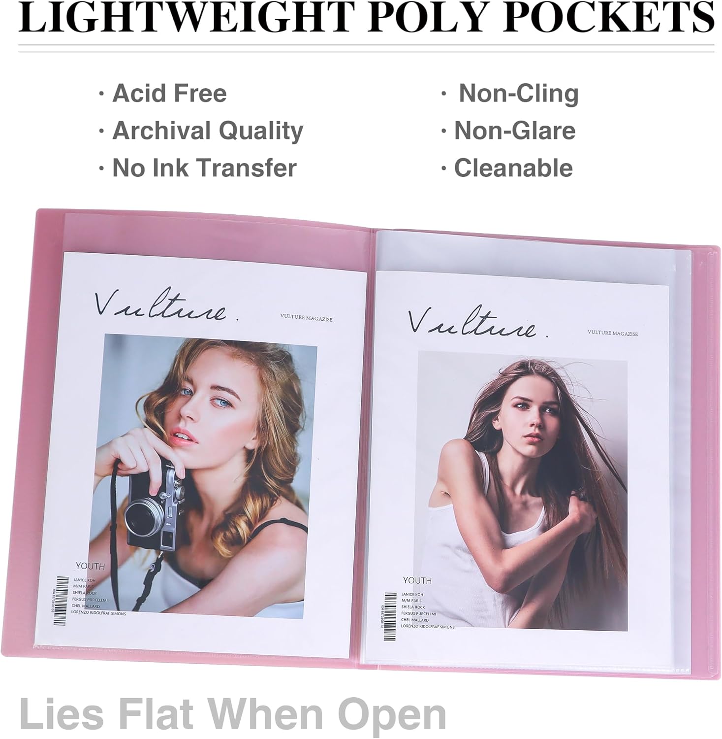 - 𝟖.𝟓 𝐱 𝟏𝟏 𝐏𝐫𝐞𝐬𝐞𝐧𝐭𝐚𝐭𝐢𝐨𝐧 𝐁𝐨𝐨𝐤:Includes 1 pack presentation book with 20 plastic binders, capable of reading 40 pages. The portfolio folder size is 8.5×11inch, each display bag size is 8.5 x 11 inch (standard A4 letter size).