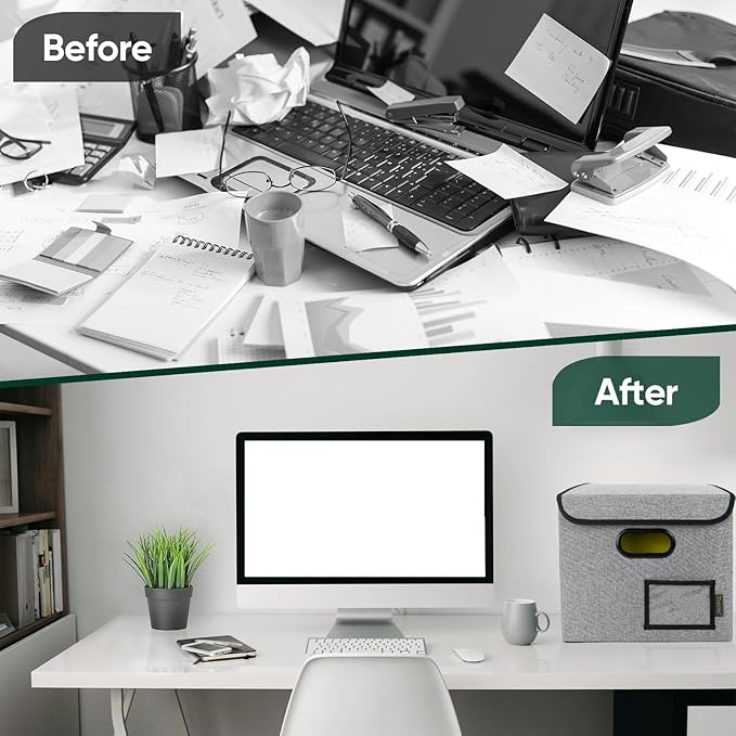 - [OPTIMIZED DESIGN] Designed with convenience in mind, our file storage box helps to elevate your efficiency and organization. The transparent label slot allows for quick identification of the contents stored inside the box. The collapsible design and sturdy handles ensure effortless storage and movement, making it convenient and easy to use.