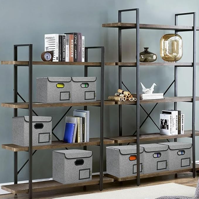 - [DURABLE MATERIAL] The outer layer of our filing box is crafted from high-quality polyester fabric and reinforced with thick cardboard in the middle. This construction ensures that the box maintains its shape and provides better bearing capacity for important documents and files. Its textured appearance can also serve as a stylish decorative element in any office or home.