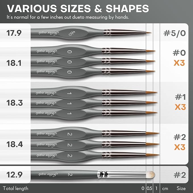 - 【Nylon Hair】This miniature paint brushes include most common size(0,1,2) features a bristle head made from imported nylon sourced from Japan. The nylon bristles have been carefully crafted to provide a smooth and controlled application, allowing for precise strokes and detailed work. The bristles retain their shape over time, ensuring consistent results even after extended use, it also easy to clean and maintain.