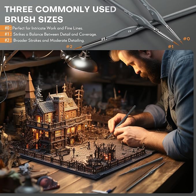 - 【suitable FOR PRECISION PAINTING】Miniature brushes are perfect for 40K, DnD miniatures D&D figurines, ultra fine detail painting, army figures. You can use detail brush set as paint by number brushes, hobby paint brushes, plastic model paint brushes,express yourself through any creation and craft! The mini paintbrushes are perfect present for your loved one or a treat to yourself !