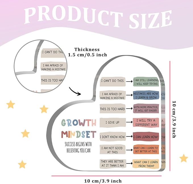 - 【Growth Mindset Decor】This acrylic heart-shaped gift is printed with many mental health and subject knowledge content, which can help you identify your emotions and learn more. Designed with negative attitude and positive attitude separately, it can decorate your room and inspire children's positive attitude and thinking habits
