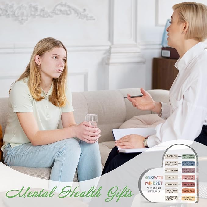 Growth Mindset Decor, Mental Health Therapy Office Classroom Art Educational Acrylic Heart Inspirational Gift Change Your Mindset Decorations Positive Sayings Gifts for Teacher Students School