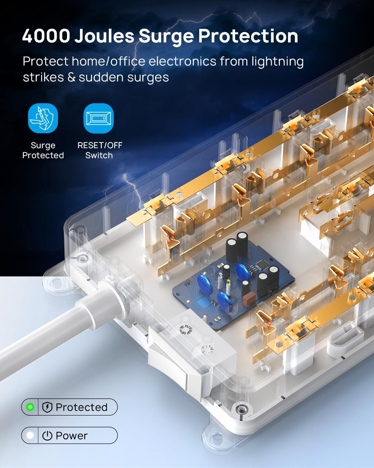 - 【Power Strip Mountable】There are 4 screw holes in the corners and include 4 screws, wall-mounted design saves space which allows you to securely mount this white surge protector power strip with usb ports on the wall, under your desk, and workbench, and is ideal for your use on various including the entertainment center, dorm room, living room, garage, etc