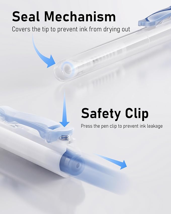 - Premium Quick-Drying Ink: 0.5mm Retractable gel pens with quick-drying ink technology to prevent smudging or smearing and keep the paper clean, it's perfect for left-handed individuals or those who have a habit of trailing their hand while writing. Each nib is sealed with wax to prevent the ink from drying out. Note: The sealing wax needs to be removed before writing
