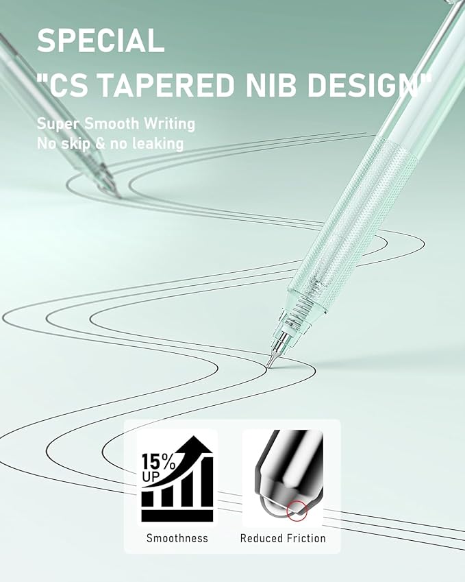 - Smooth & Various Nibs: The cute pens set have a consistent flow of ink and smooth, which results in effortless writing and give you a happy mood in your writing. It provides different nibs: ST nib, Bullet nib, CS tapered nib, 4mm wide nib for highlighter, fine spring structure built into the nib, which makes ink output stable and writing easier and smooth