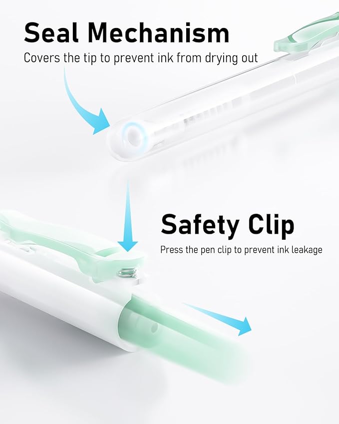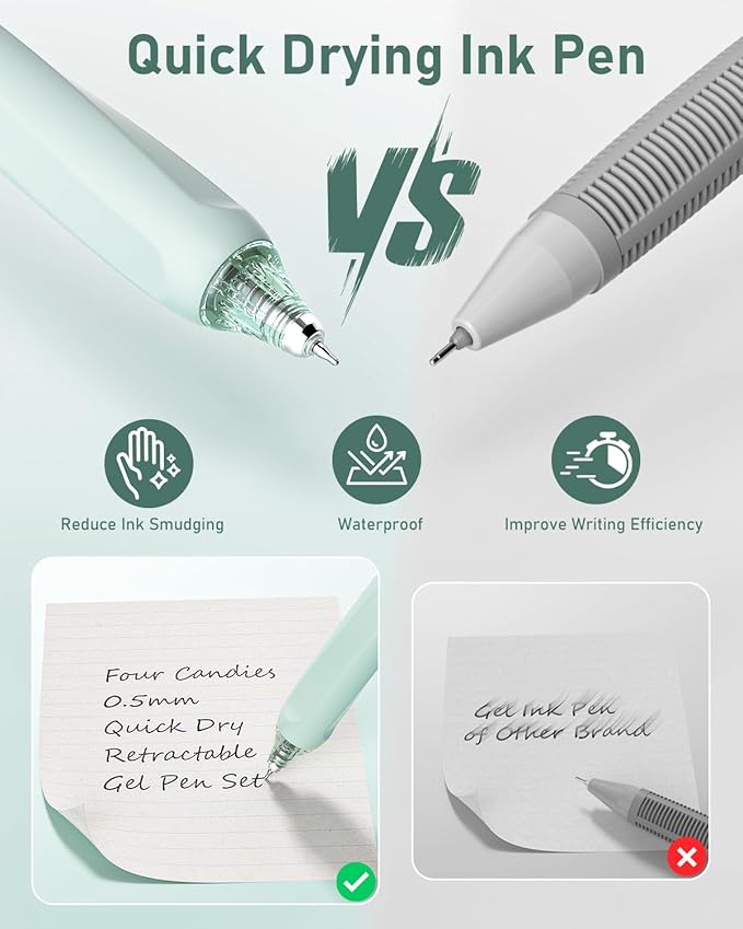 - Premium Quick-Drying Ink: 0.5mm Retractable gel pens with quick-drying ink technology to prevent smudging or smearing and keep the paper clean, it's perfect for left-handed individuals or those who have a habit of trailing their hand while writing. Each nib is sealed with wax to prevent the ink from drying out. Note: The sealing wax needs to be removed before writing