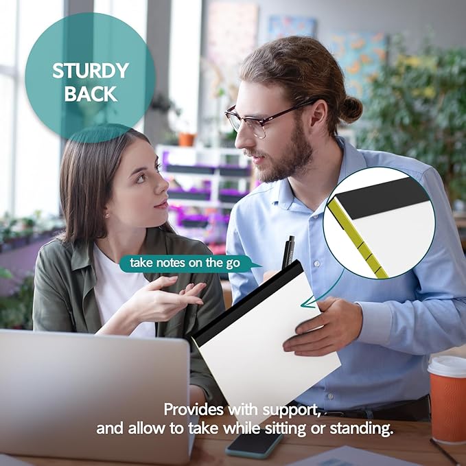 • 【Keep Notes Secure】Each yellow writing pads 8.5 x 11 has sturdy and durable top bindings. The notebook pads 8.5 x 11 have a tear-off design allows for easily and neatly removing individual sheet of paper. Each yellow paper 8.5 x 11 is fixed to the top edge with a cardboard backing, which provides the notepad with extra support, and allows to take notes while on your lap or standing.