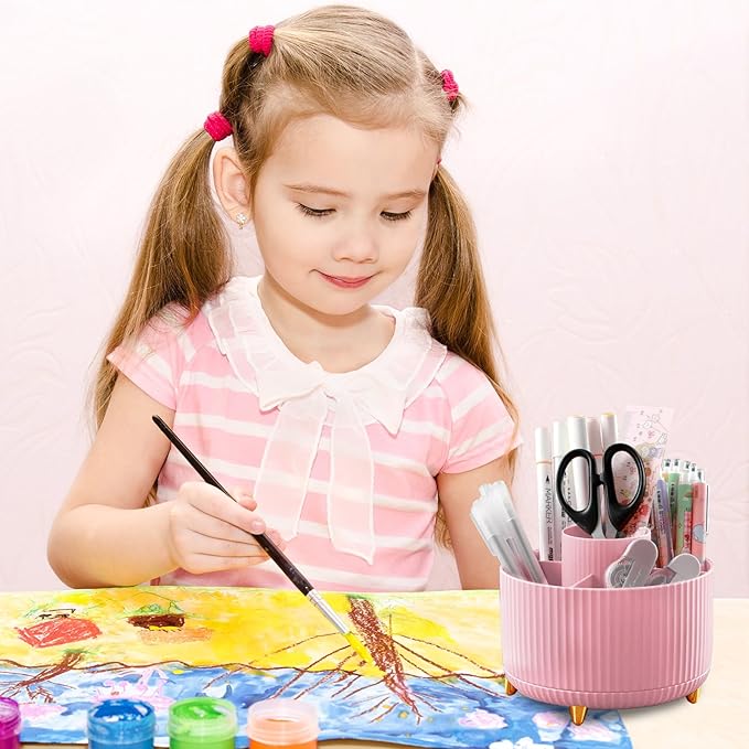Pencil Holder For Desk,5 Slots 360°Degree Rotating Desk Organizers And Accessories,Desktop Storage Stationery Supplies Organizer, Cute Pencil Cup Pot For Office, School, Home (D-Pink)