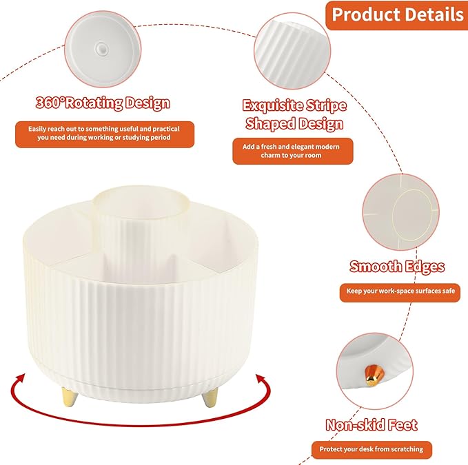 - [Modern Aesthetic Design]: A classic style gives this spinning organizer a versatile look, and striped has a sleek sophisticated design that will give your office or home décor such a classy touch. High-quality ABS makes it reliable and long-lasting, while a warm cute color adds a touch of charm.