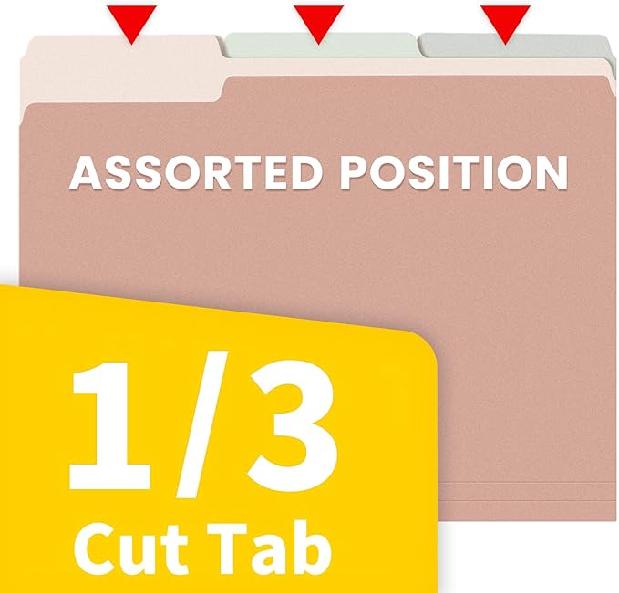 - 1/3 Cut Tab: Navigate through your files seamlessly with the 1/3 cut tab feature. This thoughtful design allows easy labeling, making it simple to categorize and retrieve documents efficiently. Stay organized and in control with these user-friendly folders.