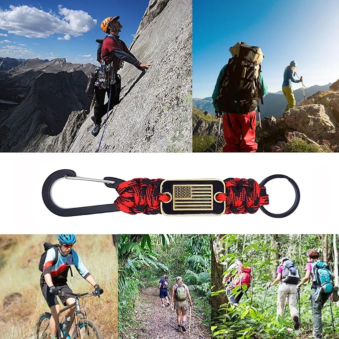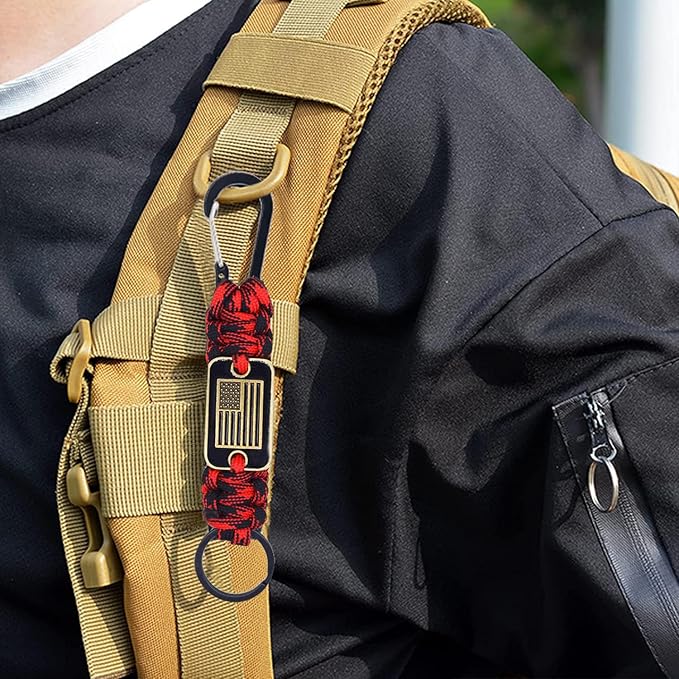 Paracord Keychain with USA Flag, Paracord Carabiner Keychain Clip, Braided Lanyard Utility Ring Hook Outdoor Camping Kit