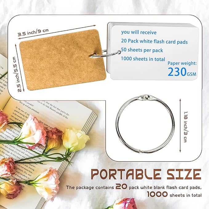 - Index Cards with Ring: These small flash cards include stainless steel binder rings,convenient for you to carry in bags,easy to sort and safety use.These white blank flash cards can be used for various purposes, such as note taking,recipe cards,color-coding projects,making flash cards,lists making and more,easy to write and read