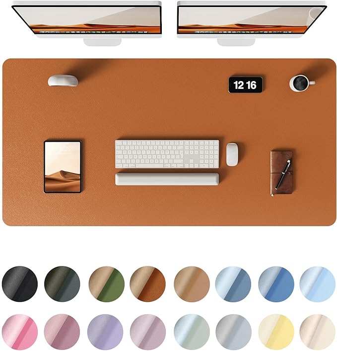 - DESK PROTECTOR: Durable PU Leather material adapted, which can protect your desk from scratches, stains, spills, heat and scuffs. Multi-color provided, change your mode by change the working atmosphere. Surface can be used as a large mouse pad, comfortable resting surface for your hands while writing, typing, and using the mouse. A must have office or study supplies.