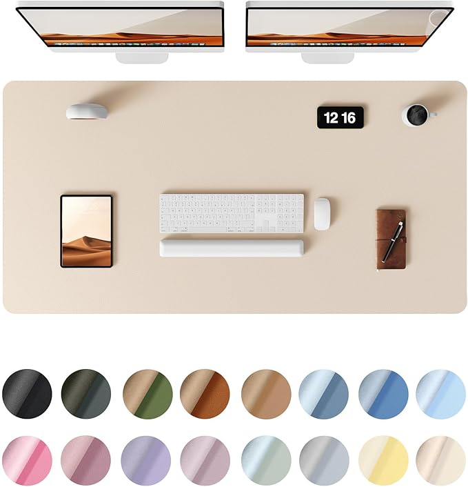 - DESK PROTECTOR: Durable PU Leather material adapted, which can protect your desk from scratches, stains, spills, heat and scuffs. Multi-color provided, change your mode by change the working atmosphere. Surface can be used as a large mouse pad, comfortable resting surface for your hands while writing, typing, and using the mouse. A must have office or study supplies.