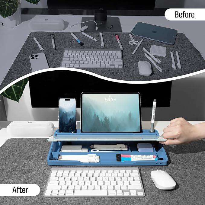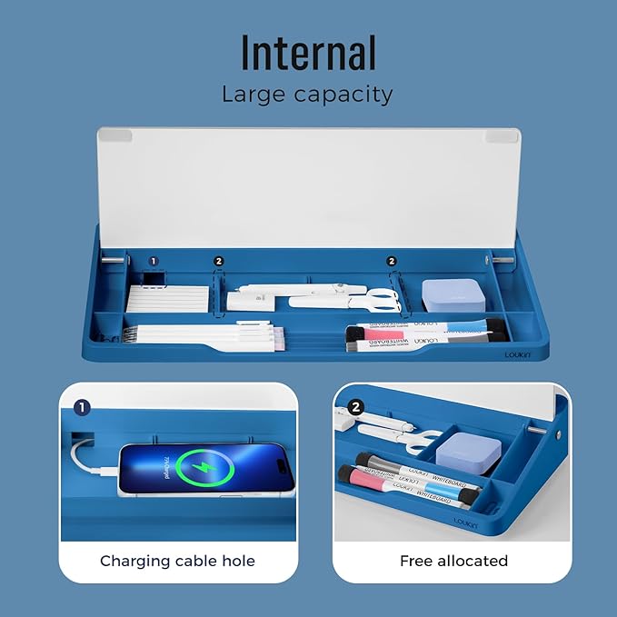 - Multifunction: A combination of writing board, desk organizer, keyboard stand and Pad/phone holder. Includes a charging cable hole on the back side of the product.