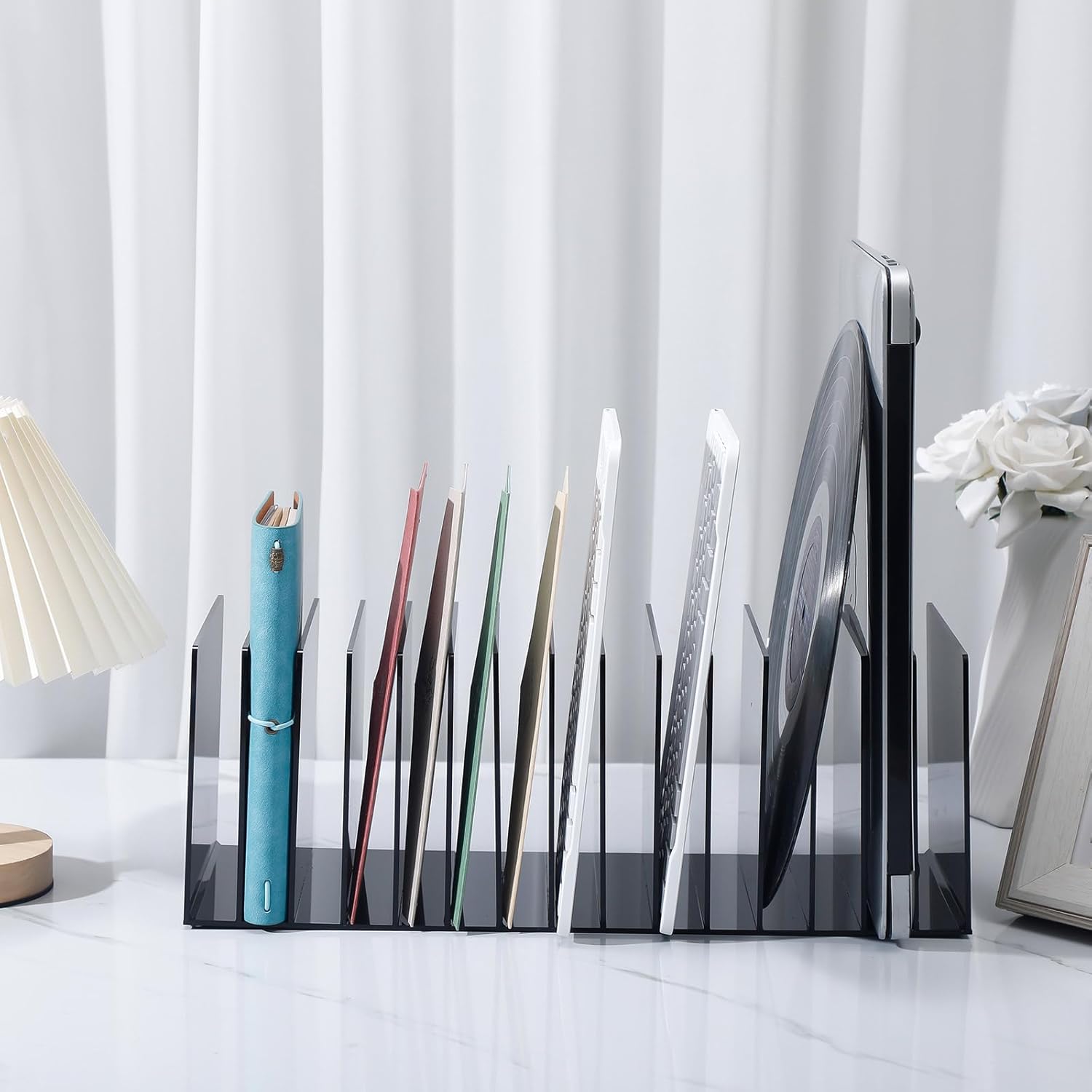 - Use with Confidence: desktop file folder organizer is made of quality black acrylic material, sturdy and reliable in your application, black appearance makes it easy to find what you need, while keeping your desk simple and stylish; Please remove the protective film before use