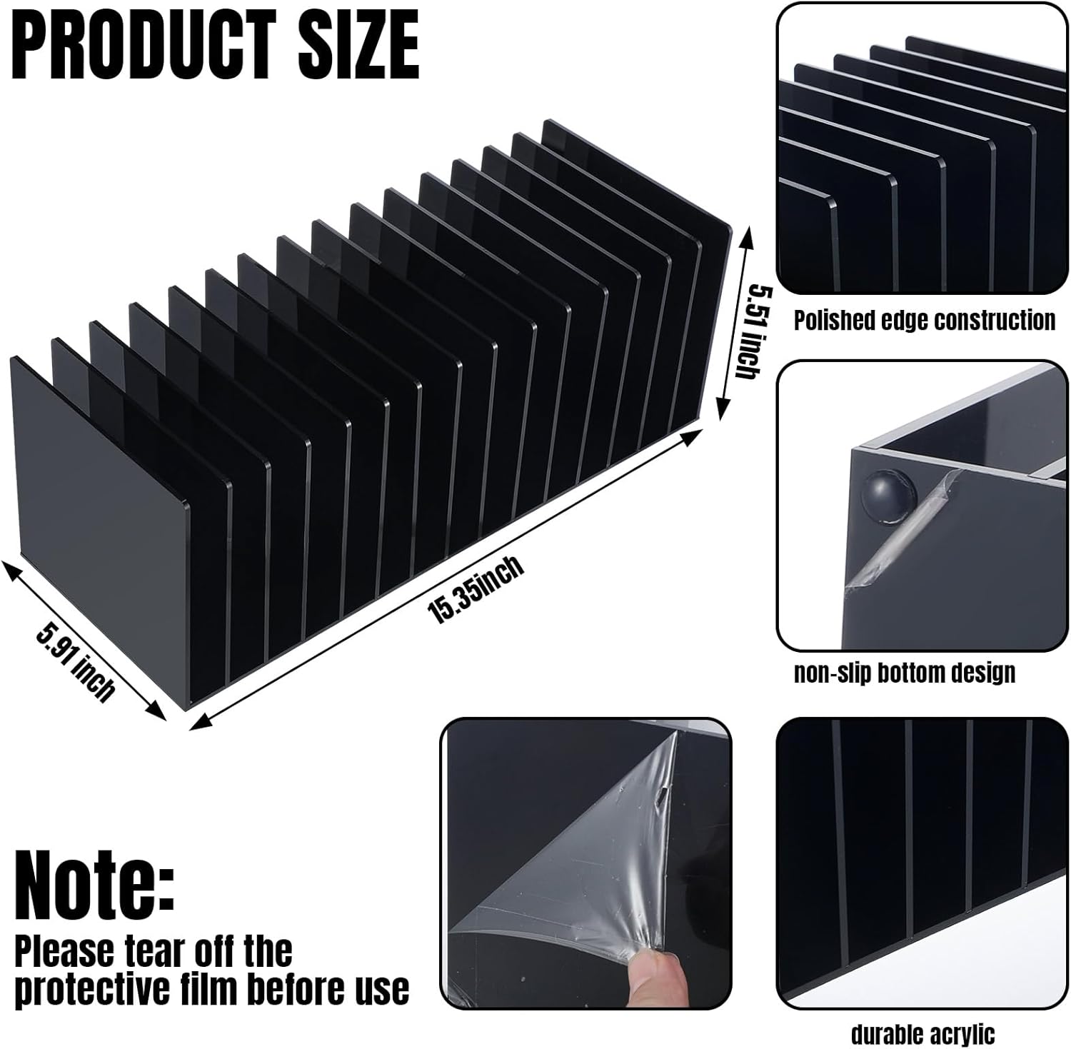 - Big Enough for Storage: each desktop file organizer measures approx. 15.35 x 5.91 x 5.51 inches/ 39 x 15 x 14 cm in depth, width and height, designed with 15 compartments, large capacity to store your important information and notes and avoid being lost; With 1 inch of space between each slot, you can keep your important paperwork within reach with this acrylic desk organizer