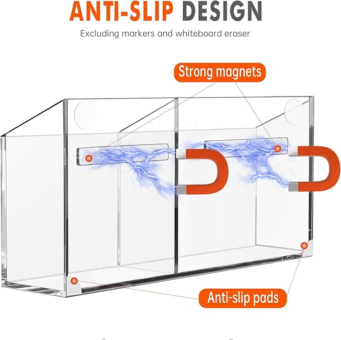 - 【MAGNETIC NON-SLIP PEN HOLDER】- The 2023 Newest magnetic anti-slip pen holder.There are too many magnetic pen holders now,only a few offer the anti-slip functionality that our product does. You will be surprised by its effectiveness(Excluding markers and Whiteboard eraser)
