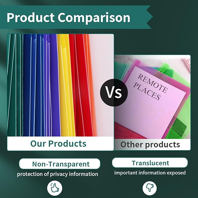 - ✅ Product Details: 9.35"W x 11.5"L and 4.5" deep pockets are designed to hold up to 100+ sheets of standard letter size paper; 3 prong fasteners make the dispersed perforated file easily and efficiently fixed in the file folder; 2 interior die-cut business card holders to facilitate your business activities and similarly sized categorized labels; Opaque design compared to other translucent products,better protect your important documents,away from information leakage and privacy exposure.