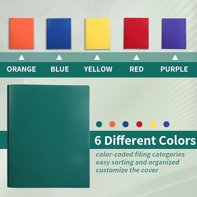 - ✅ Multi-color Available: 6 different colors(red,orange,yellow,green,blue and purple) create color-coded filing categories that easily organize different types of files, keep you organized in your busy work or study schedule,and allow you to customize your own cover for different subjects. Moreover, the variety of colors adds vibrancy to your working process or learning resources.