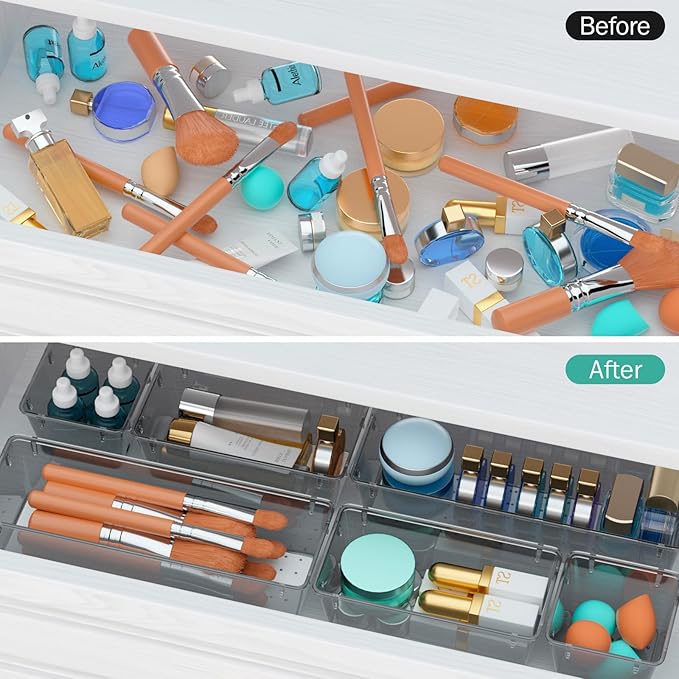 - Non-Slip Design: The bottom of the storage organizers has a non-slip tread to prevent the tray from moving around when the drawer is opened and closed