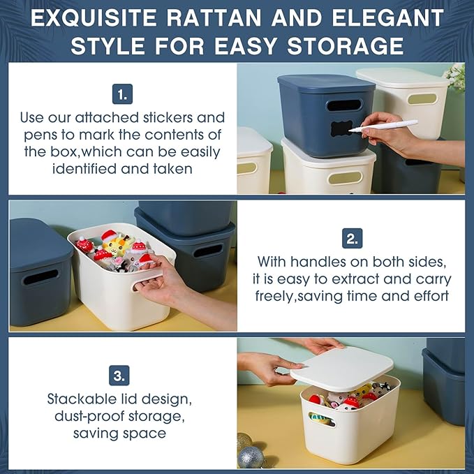 - Widely Applicable: you can use these storage bins with lid on various occasions, for office, classroom, cabinet, shelf, drawer, kitchen, room, etc., which will store your belongings well, so that your desktop looks more tidy