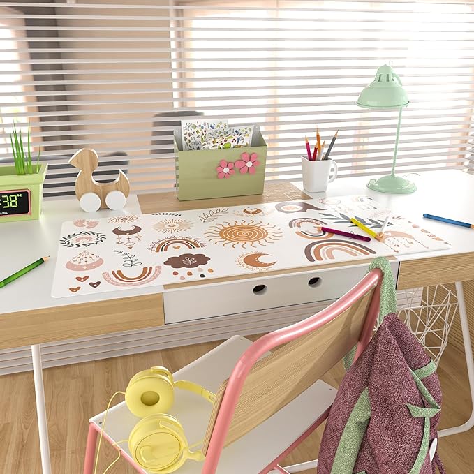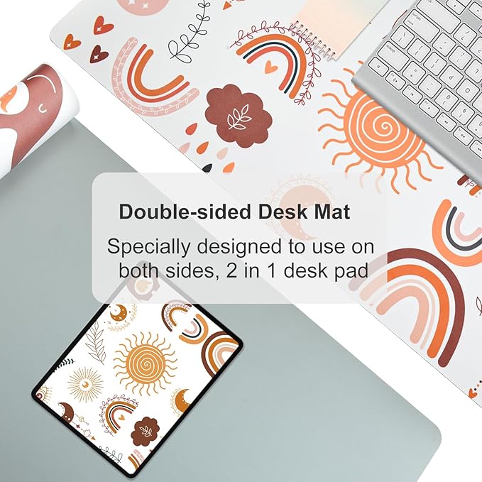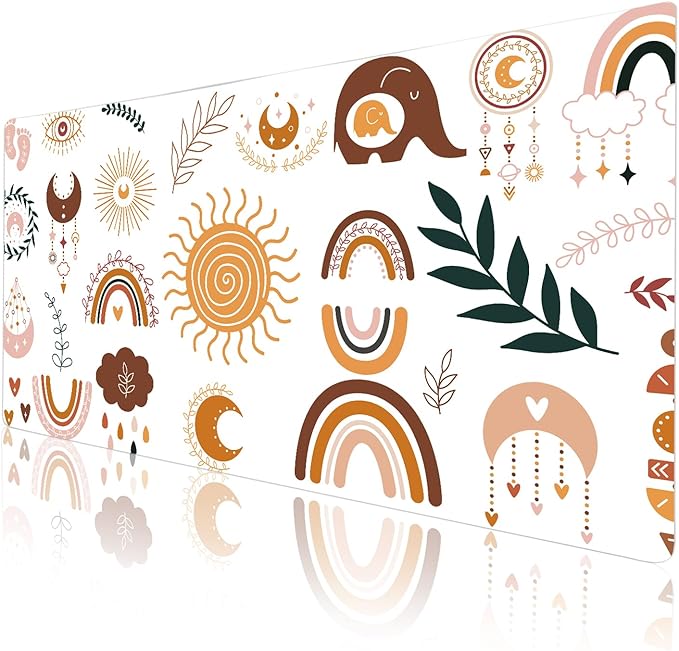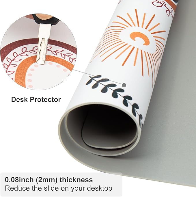 - Extended Size Desk Mat: This boho sticker desk pad measures 31.5"×15.7"(80×40cm), which is large enough to accommodate your laptop, keyboard, mouse, coffee cup and more. Fits your desktop perfectly and provide perfect movement space. You can also cut to the size you want.